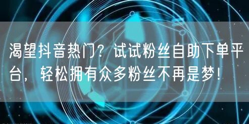 总之,如果你渴望成为抖音热门用户,想要轻松拥有众多粉丝不再是梦!那么,试试粉丝自助下单平台吧!让我们一起开启抖音营销的新征程!