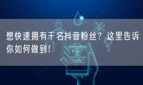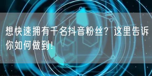在抖音这个短视频平台上,拥有众多的粉丝意味着更高的影响力和话语权。那么,如何快速拥有千名抖音粉丝呢?接下来,我们将为你揭示一些有效的策略和技巧。