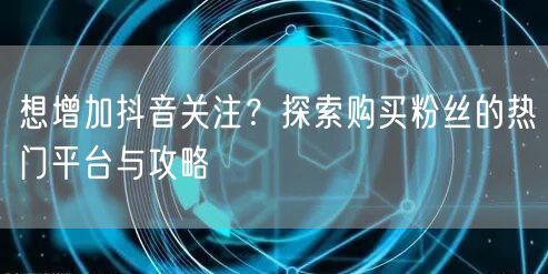 抖音作为当下最热门的短视频社交平台,拥有庞大的用户群体,吸引了众多创作者和商家。在这个平台上,关注量直接关系到影响力。那么,如何快速增加抖音关注呢?购买粉丝成为了一种选择。本文将为您探索购买粉丝的热门平台,并分享一些攻略。