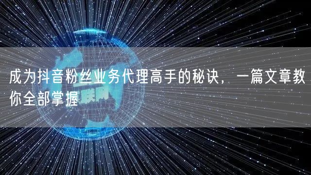 随着抖音平台的快速发展,越来越多的人开始关注抖音粉丝业务代理这一领域。如何快速成为该领域的代理高手,掌握其中的秘诀,是本文要探讨的核心内容。