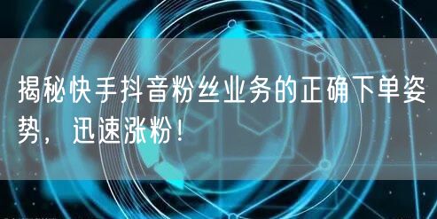 通过以上内容的介绍,相信你已经对快手抖音粉丝业务的正确下单姿势有了更深入的了解。希望你在实践中能够运用这些知识,实现快速涨粉,提升影响力!