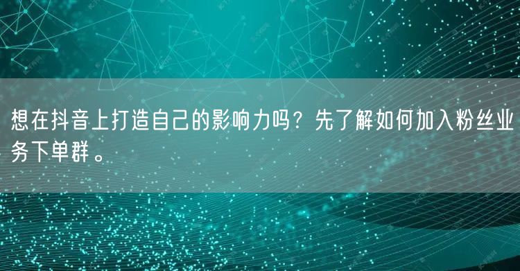 通过以上步骤,你可以更好地在抖音上打造自己的影响力。记住,加入粉丝业务下单群是提升影响力的一种有效方式,但要结合自己的实际情况和需求进行选择。祝你在抖音平台上取得成功!
