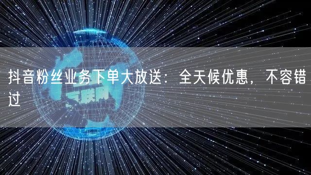 亲爱的抖音用户们,好消息来啦!现在,我们为您带来了一场抖音粉丝业务的下单大放送活动,全天候优惠,让您轻松增加粉丝,提升个人影响力!