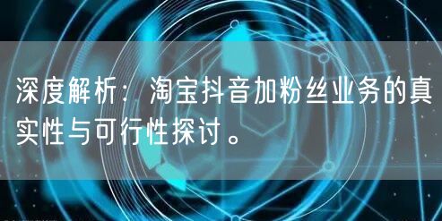 随着互联网的快速发展,社交媒体成为大众获取信息、互动交流的重要渠道。淘宝抖音等平台作为社交媒体的代表,吸引了大量用户的关注和参与。在这样的背景下,加粉丝业务逐渐兴起,引起了广泛关注。本文将深度解析淘宝抖音加粉丝业务的真实性及可行性,探讨其背后的运作机制与潜在风险。