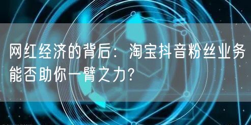 随着互联网的发展,网红经济已经成为一种不可忽视的现象。越来越多的人希望通过社交媒体平台获得关注,从而转化为商业价值。在这样的背景下,淘宝抖音粉丝业务应运而生,成为网红经济中的重要一环。那么,淘宝抖音粉丝业务能否真的助你一臂之力呢?本文将就此展开探讨。