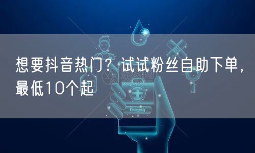 所以,如果你想要在抖音上迅速成为热门并扩大影响力,不妨尝试一下粉丝自助下单服务。最低只需10个粉丝起订,让你的抖音账号人气飙升,轻松吸引更多关注和赞赏!加入抖音的热门行列,成为网红达人的梦想触手可及!