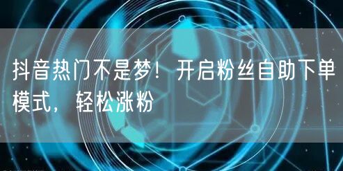 抖音作为当下最热门的短视频平台之一,吸引了众多用户和内容创作者。在这个充满机遇和挑战的舞台,如何快速涨粉,实现抖音热门梦?本文将为你揭示开启粉丝自助下单模式的秘诀,助你轻松涨粉。
