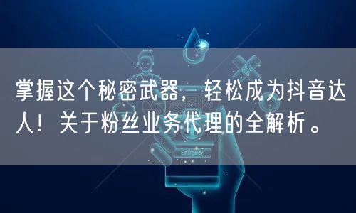 掌握粉丝业务代理的秘密武器,结合网络营销策略和业务增长秘籍,轻松成为抖音达人!在这个充满机遇和挑战的时代,让我们一起拥抱变化,共创美好未来!