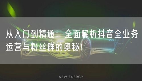本文全面解析了抖音全业务运营与粉丝群的奥秘,从入门到精通,详细阐述了抖音运营的核心策略。通过阅读本文,你将了解到如何有效管理粉丝群,掌握抖音运营的技巧和策略,从而更好地利用抖音这一社交媒体平台进行营销推广。