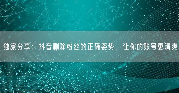 通过本文的介绍,你学会了在抖音上正确删除粉丝的姿势。优化你的账号管理,打造清爽的抖音账号,提升用户体验和个人形象。希望你在实际操作中能够运用这些技巧,更好地管理你的抖音账号。