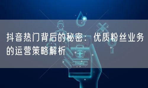 通过以上的分析,我们可以看出,抖音热门背后的秘密在于优质粉丝业务的运营策略。创作者需要关注内容创作、用户定位、运营策略和数据分析等方面,不断提高自己的运营水平,才能在抖音平台上取得成功。