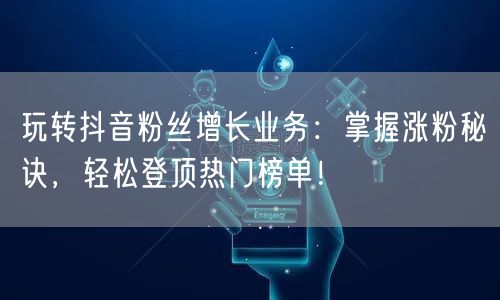 玩转抖音粉丝增长业务,掌握涨粉秘诀,轻松登顶热门榜单!通过以上七个方面的努力和实践,相信你一定能够在抖音上获得更多的关注和认可。让我们一起努力,实现抖音营销的目标吧!