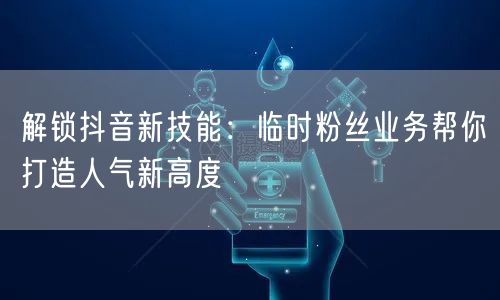 临时粉丝业务是一种新兴的抖音推广方式。它通过一系列技术手段,在短时间内快速增加你的粉丝数量。这些粉丝是真实的用户,他们会互动你的内容,帮助你提高曝光率和知名度。临时粉丝业务可以让你在短时间内获得更多的关注和认可,从而增加你的影响力和商业价值。
