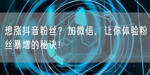 通过加微信了解抖音粉丝增长秘诀,你可以轻松实现粉丝暴增,提升自己在抖音平台上的影响力。赶快行动吧,让我们一起探索抖音营销的无限潜力!