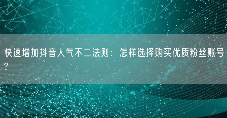 随着移动互联网的普及,抖音已经成为人们日常生活中不可或缺的一部分。越来越多的人选择在抖音上展示自己的才华和创意,从而吸引更多的关注和粉丝。如何快速增加抖音人气成为了众多用户关注的焦点。其中,购买优质粉丝账号被许多用户视为一种有效的手段。那么,如何选择购买优质粉丝账号呢?本文将为你揭示其中的不二法则。