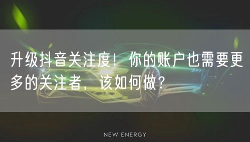 在社交媒体盛行的时代,抖音已经成为众多用户分享生活、展示才艺的重要平台。拥有一个高关注度的抖音账户,不仅能扩大影响力,还能为品牌或产品带来可观的曝光。那么,如何升级抖音关注度,让你的账户也能吸引更多的关注者呢?