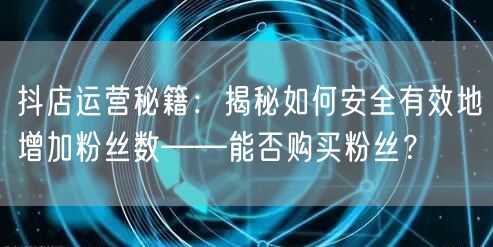 随着互联网的发展,抖音电商已成为一种新兴的商业业态,越来越多的人选择在抖店上开设自己的网店。然而,如何有效地增加粉丝数成为了许多抖店运营者关注的焦点问题。本文将为您揭秘抖店运营的秘籍,探讨如何安全有效地增加粉丝数,以及是否可以通过购买粉丝来实现快速增长。