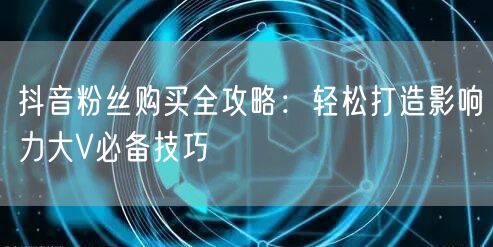 通过本文的分享,相信你已经掌握了抖音粉丝购买的攻略和打造影响力大V的必备技巧。在抖音上获得更多的关注和认可,需要不断努力和尝试。希望你在抖音上取得更大的成功!