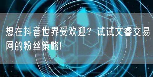 想要在抖音世界受欢迎,除了创意和才华,还需要正确的策略和方法。文睿交易网的粉丝策略为你提供了一个全新的思路,助你轻松成为抖音网红!赶快试试这一策略,让你的抖音之路更加顺畅!