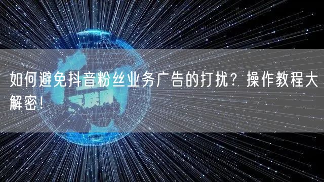 通过本文的介绍,大家应该对如何避免抖音粉丝业务广告的打扰有了更清晰的了解。希望大家能够合理运用这些方法,远离广告烦恼,享受更加畅快的抖音体验。同时,也希望大家能够尊重广告创作者的努力,共同营造一个和谐的抖音社区环境。