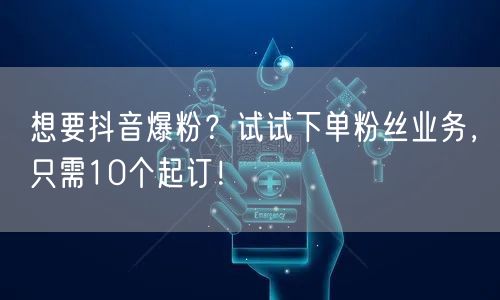 想要抖音爆粉,尝试下单粉丝业务是一个不错的选择。但请记住,内容质量始终是吸引粉丝的关键。在增加粉丝的同时,不断提升自己的内容创作能力,才能让你的抖音之路走得更远。