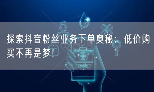 通过本文的探讨,相信您对抖音粉丝业务的下单奥秘有了更深入的了解。实现低价购买不再是遥不可及的梦想,只要您掌握了正确的方法和技巧,就能轻松获取高质量粉丝,助力业务快速增长。在这个竞争激烈的市场环境中,抓住抖音营销的机会,让您的业务蒸蒸日上!